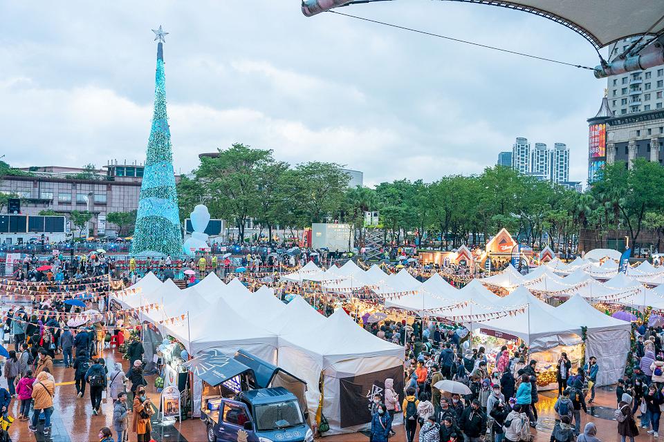 新北市民廣場化身德國耶誕村,帶給民眾年末歡樂的異國體驗(2022年資料照)。翻攝新北市政府