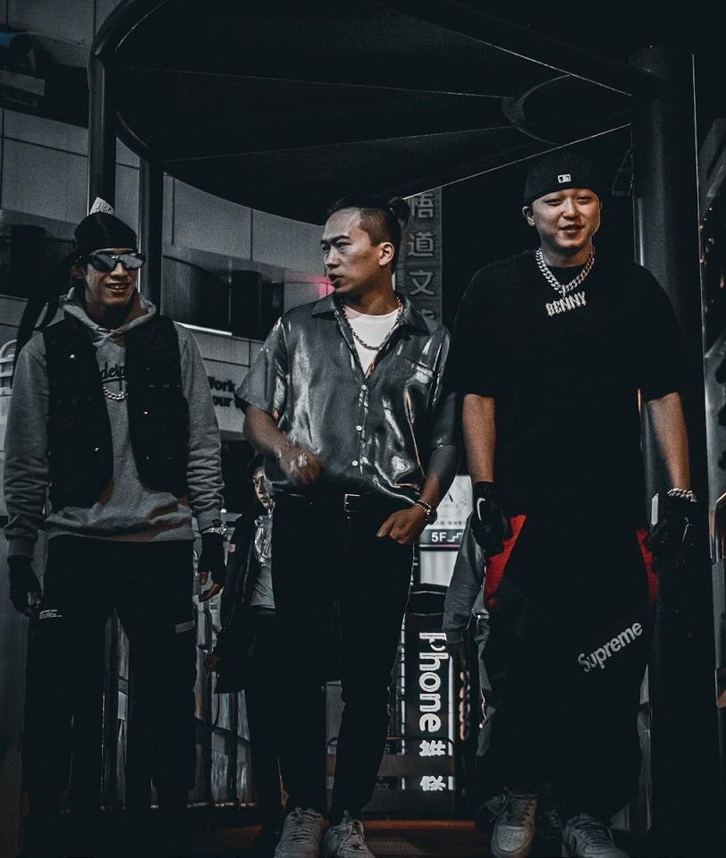 周靄宏(中)與台中地下饒舌歌手MARS_BENNY(左)CRAZY_E(右)合作新歌。周靄宏提供