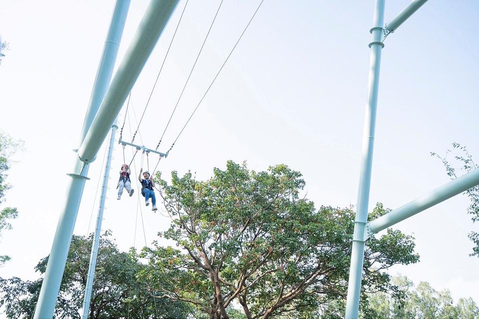 森林高空冒險260公尺的高空滑索Zipline。翻攝嘉義縣政府