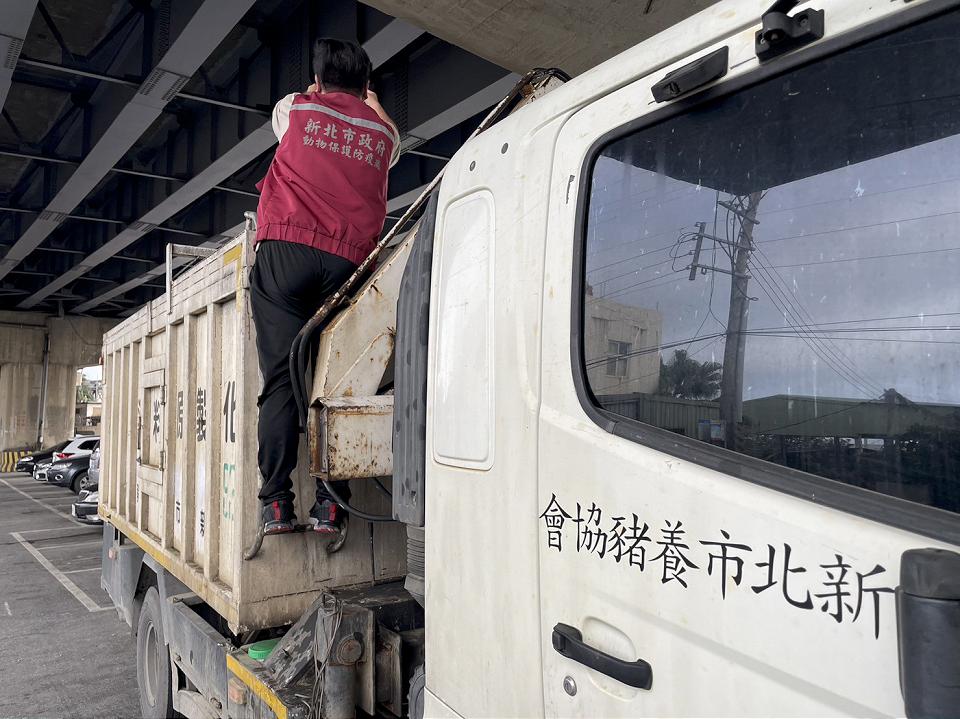 動保處每日派駐防疫人員在肉品市場查核,針對運豬車輛及夜間運輸車輛進行盤查,督導運豬車輛皆有裝載GPS追蹤系統,完成清消作業才可離場。為加強轄內死廢畜禽的載運車稽查來源及流向,透過防檢署「運輸車輛查核系統」隨機沿路攔查載運車輛,確保原料皆有上蓋密閉,核對死廢畜禽數量及化製程序正常,替國人食品衛生安全把關。(記者陳品綸/新北報導)