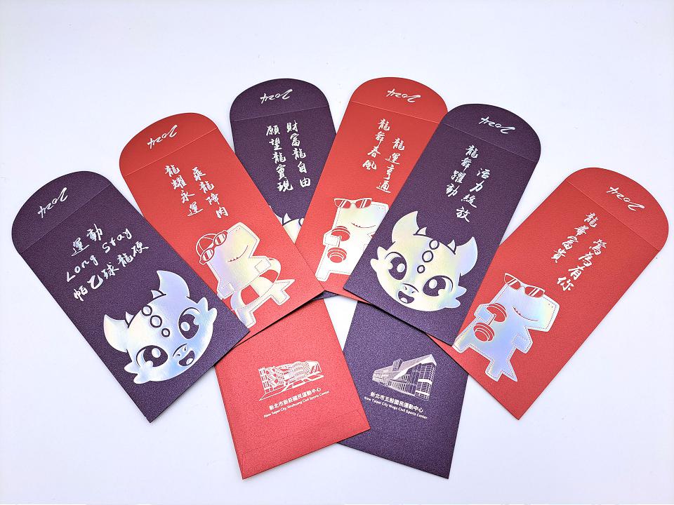 新北市體育局年推出「寶貝酷龍紅包袋」陪民眾迎新春,農曆年前至新北運動中心運動,消費就送「寶貝酷龍紅包袋」1組,每天限量100組,「寶貝酷龍紅包袋」1組兩入,祝福拿到的朋友運動LONG LONG、健康LONG LONG,另外各運動中心還推出送春聯等豐富活動歡迎大家來參加。