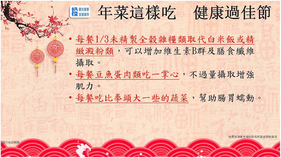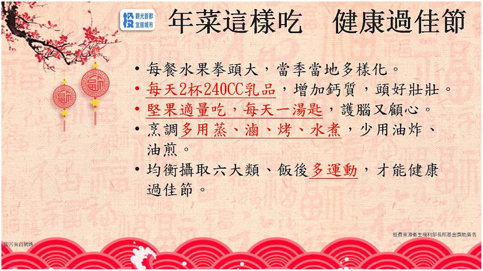春節年菜要聰明吃才能少負擔。翻攝南投縣政府