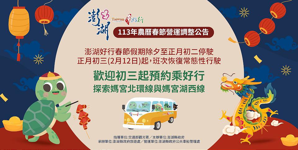 澎湖好行公車春節3天停駛 。翻攝澎湖縣政府