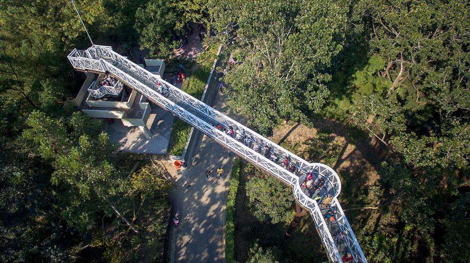 竹崎親水公園的天空走廊全長185公尺,距離地面最高達19公尺。翻攝嘉義縣政府