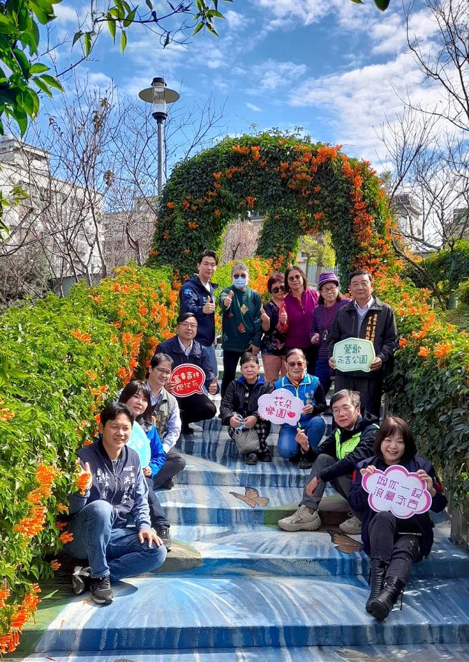 新北市鶯歌區永吉公園一直以來以盛開耀眼的炮仗花聞名全台,尤其春節期間是炮仗花盛開季節,鶯歌區公所與當地永吉里合作,將公園最富盛名的炮仗花拱門花廊階梯重新設計彩繪,打造鶯歌美學廊道。