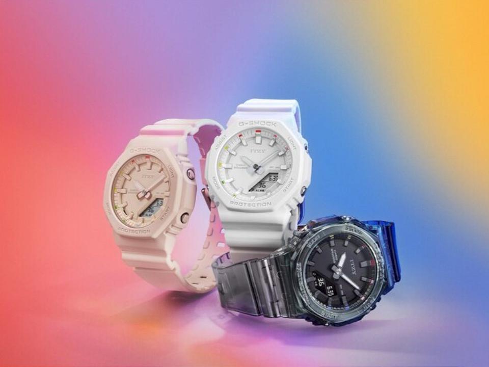 新推的GMA-P2100IT和GMA-P2100ZY手錶是G-SHOCK與ITZY首次正式合作的成果。新款手錶基於GMA-P2100型號,將2100系列獨特的八角形表圈設計以更精緻小巧的風格呈現,運用低調的單色調配色彰顯出ITZY獨有的酷感形象。