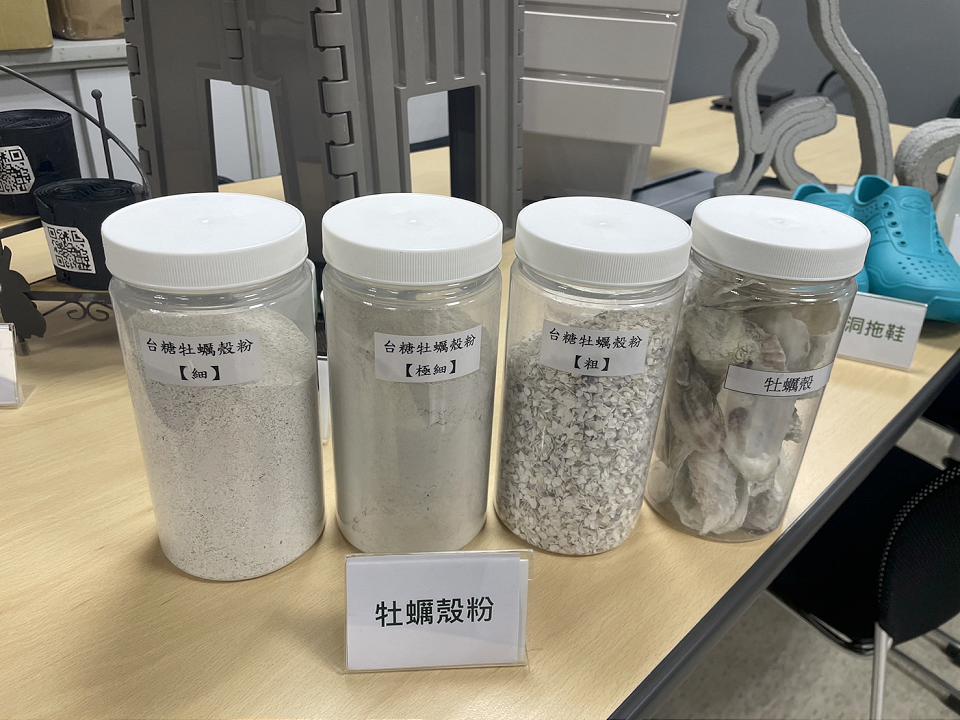 台灣糖業公司表示,台糖生技材料廠是全國唯一取得ISO 9001、ISO45001、BS 8001循環經濟認證及再利用機構許可的牡蠣殼加工廠,每年可處理5萬噸牡蠣殼,經鍛燒、加工後,產出4萬噸蚵殼粉,可依市場需求產出不同粒徑,首波應用在肥料、飼料等農業領域;為提升產品附加價值,台糖積極與國內企業、專家及學研單位合作,推展工業化應用,目前已開發台塑抗菌塑膠、3D列印漿體、塑木、拖鞋、收納箱、摺疊椅及文創藝品等項目,另有塗料、保溫材料、生物可分解塑膠、濾材等多項應用正研發測試中..........