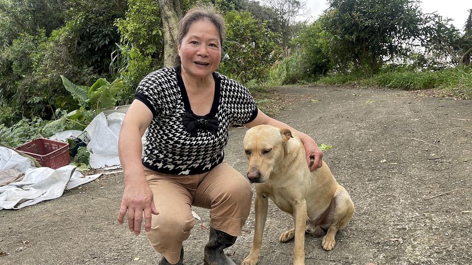 發現疑遭棄養麝香豬的「豆漿」與主人陳小姐。翻攝新北市政府