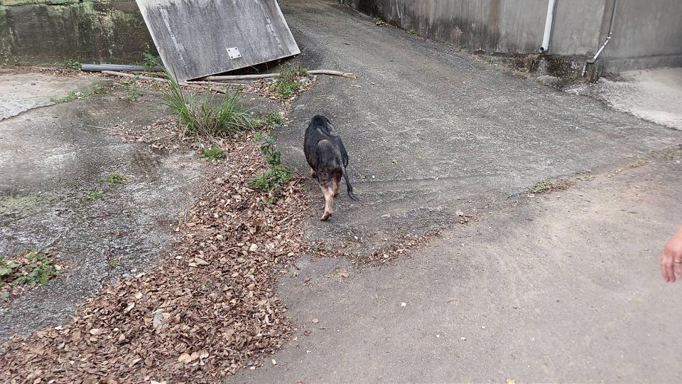 這隻麝香豬疑似遭棄養在山路閒晃。翻攝新北市政府
