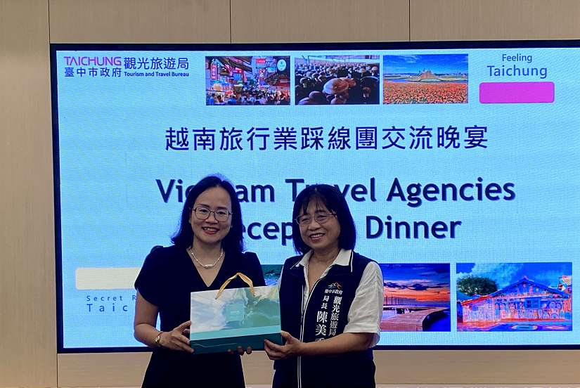 觀旅局陳美秀局長致贈伴手禮予vietravel副總經理-圖/台中市政府提供