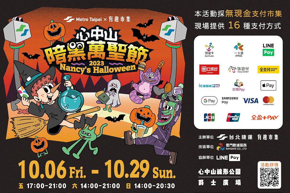 最chill、最狂歡的「心中山Nancy’s Halloween暗黑萬聖節」來囉!10月6日至10月29日的每週五傍晚17時,及每週六、日14時,在心中山線形公園及爵士廣場熱鬧登場;集結近50個風格攤位,並攜手南西商圈周邊商家,推出多項限定暗黑色系餐點、特調飲品、文創手作,加上最吸睛搞怪的萬聖節佈置,歡迎大家跟我們一同裝扮,到心中山體驗最有Fu、最High的萬聖節!
