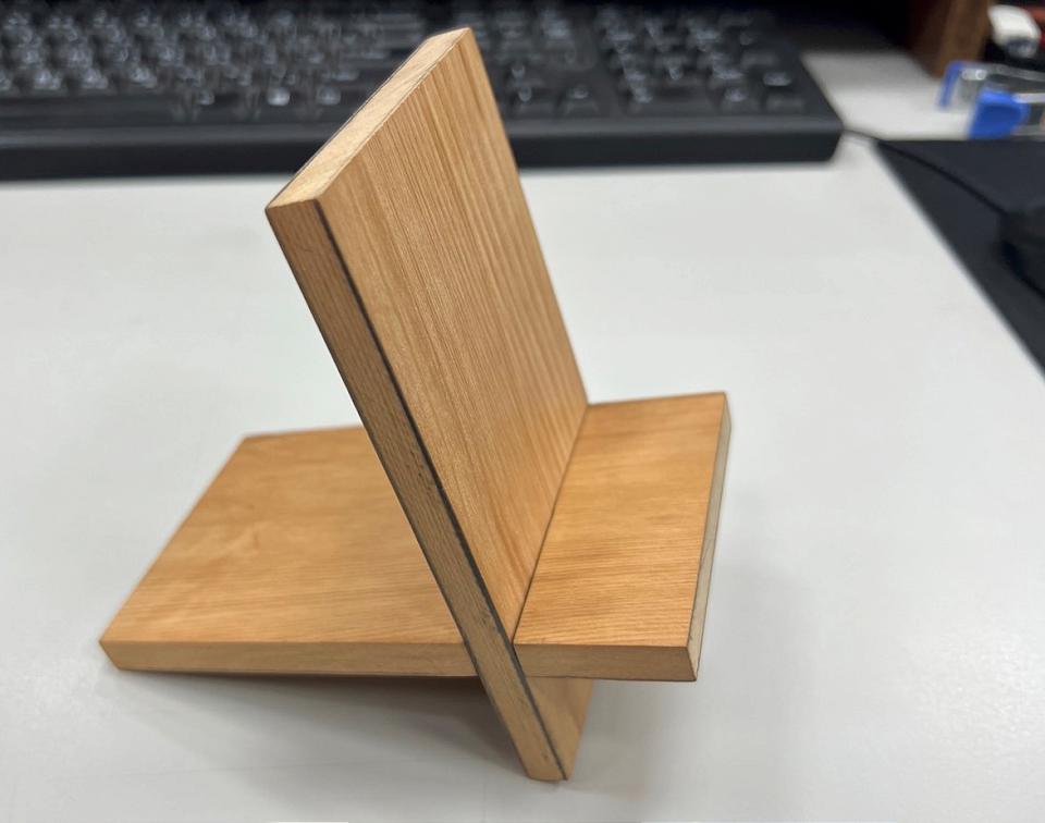 簡單的將2塊木板組合,就成了手機架。翻攝台中市政府