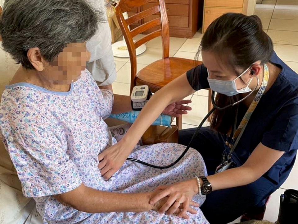 羽居家護理所蔡嘉文護理師,隨著羅醫師一起進入每個長照家庭,透過評估個案的步態、言語、生活型態,再進階到健康情形、用藥狀況、檢測身體指數(體溫、血壓、血氧和血糖等),給予適當的調整和衛教。從輔具使用建議、慢性疾病照護衛教、傷口照護指導到營養與水分攝取等細節,經過悉心溝通解決許多照護層面的問題。