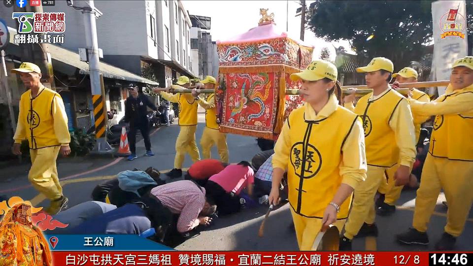 白沙屯三媽祖贊境途中不少信徒鑽轎祈福,最後停駕在二結王公廟。翻攝白沙屯拱天宮臉書