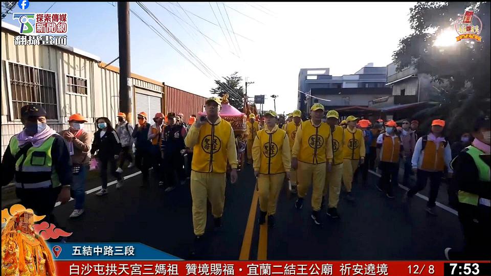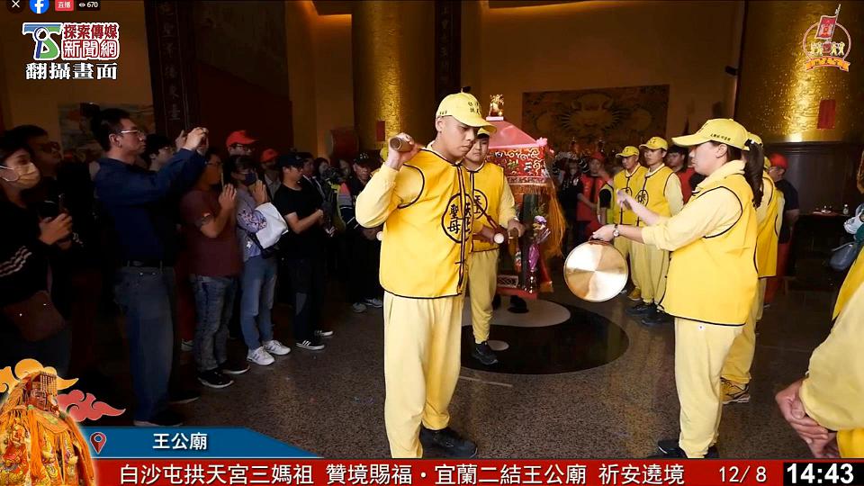 宜蘭縣財團法人二結王公廟去年邀請白沙屯媽祖及山邊媽祖共同參與宜蘭溪南、溪北巡聯合祈安賜福遶境後,結下了深厚的神緣,今年再次邀請白沙屯拱天宮媽祖,參加二結王公廟的年度祈安賜福,白沙屯拱天宮三媽祖8日凌晨3時30分起駕出發。
