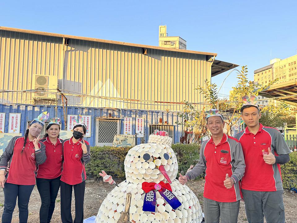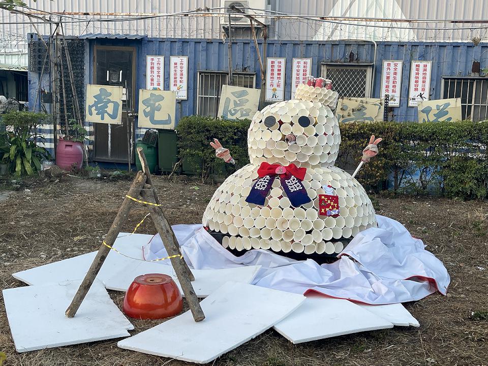 以約1200個大紙杯做大雪人。翻攝台中市政府
