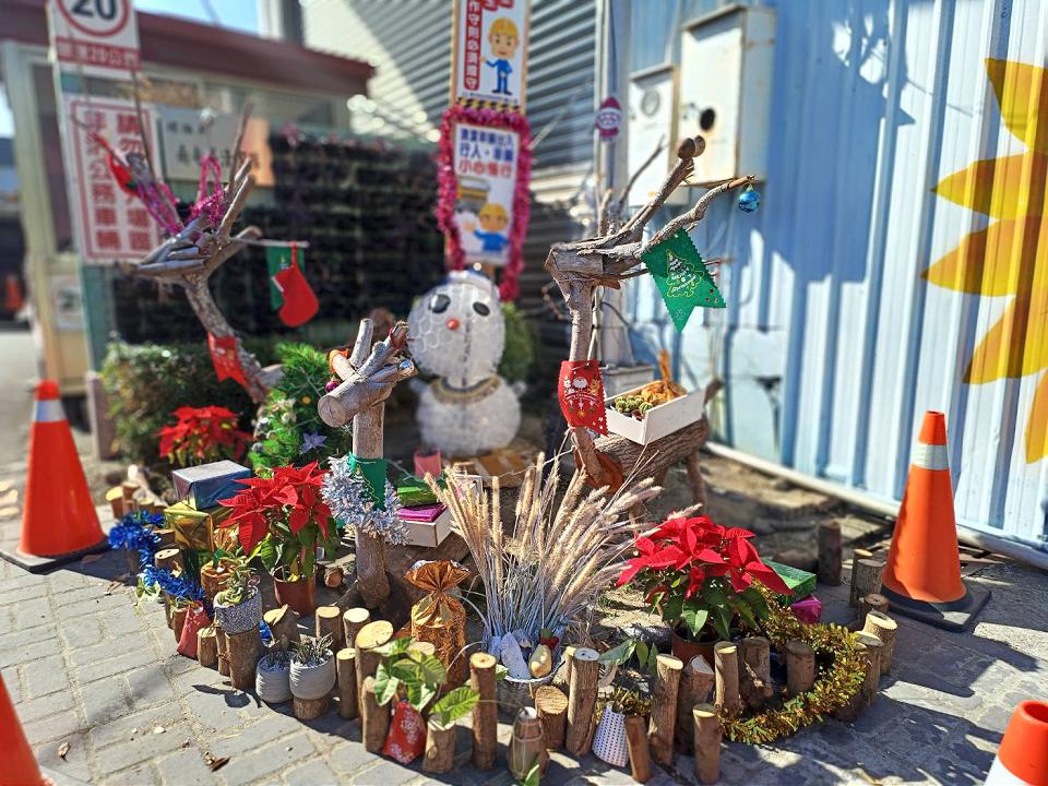 清潔隊員巧思大爆發,利用回收物裝置耶誕過節氣氛。翻攝台中政府