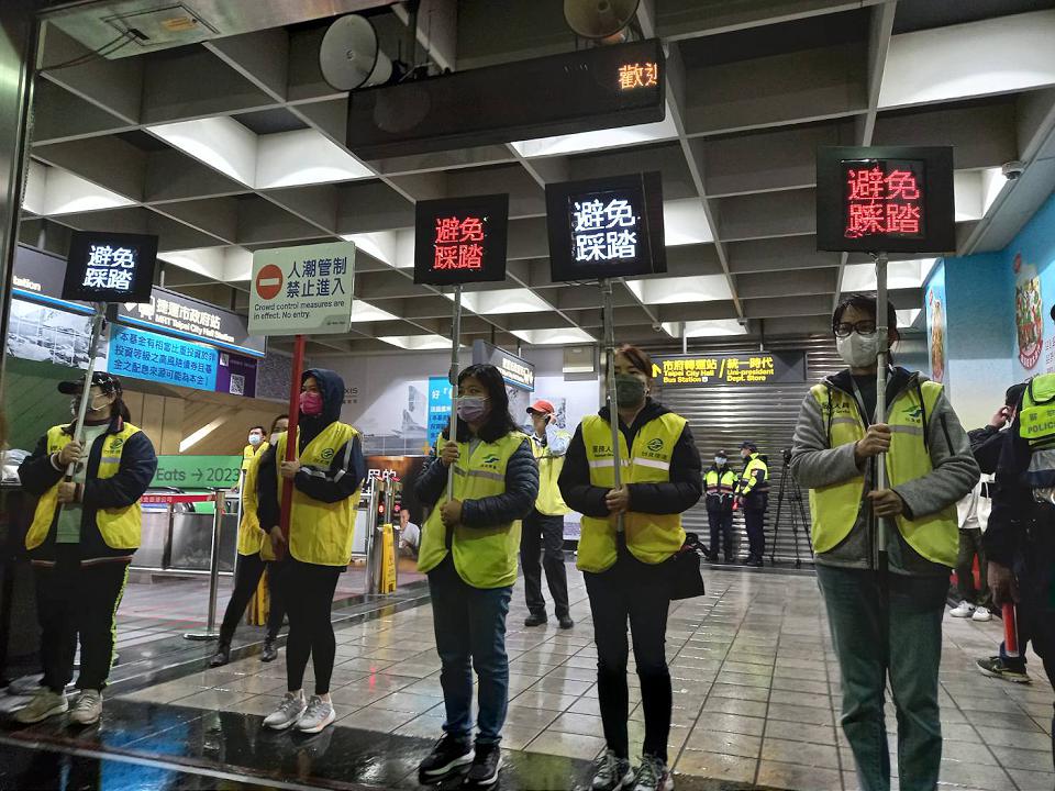 這次捷運人員在人潮最多的市政府站2號出口、台北101世貿站5號出口及國父紀念館站4號出口與5號出口,擴大淨空緩衝區,現場加派人力並加強舉牌宣導,請大家請勿推擠,維持進站秩序,維護自身及他人安全。另外為加強疏運跨年活動人潮,主要路線板南線及淡水信義線,自19時起以最密班距行駛提供服務,板南線最短班距為2~3分鐘,淡水信義線最短班距為3分鐘;此外,淡水信義線19時過後均延駛至象山站,其他路線亦將視人潮狀況彈性調整班距。
