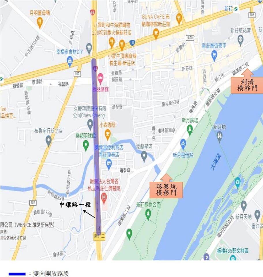 新崑路(中正路-環漢路)、中環路一段(中正路-瓊林路)。