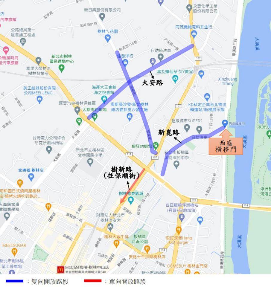大安路(新樹路-中正路)、俊英街(俊英街116巷-樹新路)、樹新路(往保順街)(中正路-保順街 單邊)。等部分路段開放紅黃線停車,同時暫停路邊停車收費。