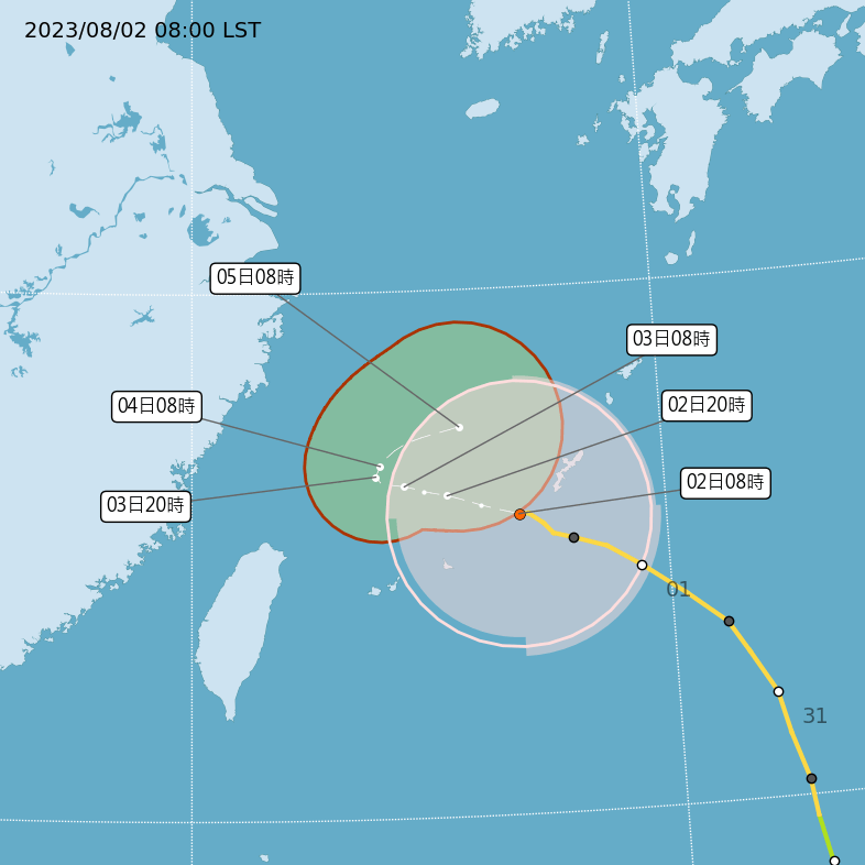 目前已發布海上颱風警報,警戒區域台灣北部海面、台灣東北部海面航行及作業船隻應嚴加戒備,北部海面、東北部海面及巴士海峽風浪逐漸增大;基隆北海岸、東半部、蘭嶼、綠島、恆春半島沿海及馬祖易有長浪發生,避免到海邊活動。