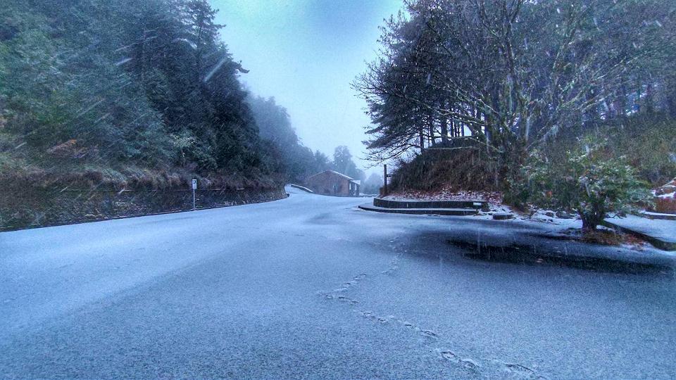 根據大雪山森林遊樂區表示,海拔2000公尺的大雪山國家森林遊樂區,清晨在小雪山資訊站開始飄雪,讓遊樂區覆蓋上靄靄白雪,成為白茫茫的銀白世界,由於部分路段有雨勢加上低溫,路面有結冰情形,所以破冰車隨時待命清除路面結冰,所以在35公里收費站進行入園車輛加掛雪鏈檢查,請追雪民眾配合管制。(記者陳品綸/台中報導)