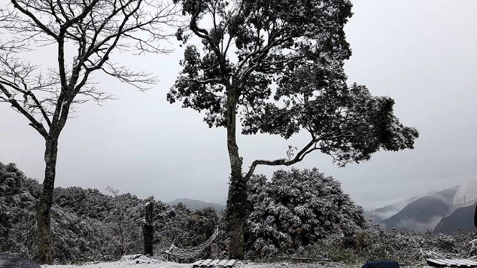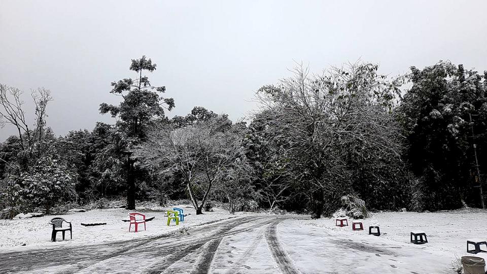 新北烏來山區海拔高度不到1000公尺,卻在23日早上出現飄雪景象,目前在信福路120巷4公里至7公里處有積雪,這場雪也讓當地居民相當興奮,因為自2016年的霸王級寒流下雪後,終於又再次看到雪景,為了顧及追雪民眾安全,新店警分局在沿途設置2管制點,若發現道路結冰,將進行車輛加掛雪鏈管制。(記者劉逸撰/新北報導)