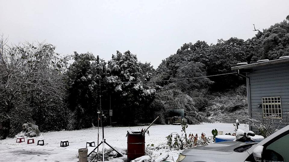 新北市烏來信福路120巷內降雪。讀者提供