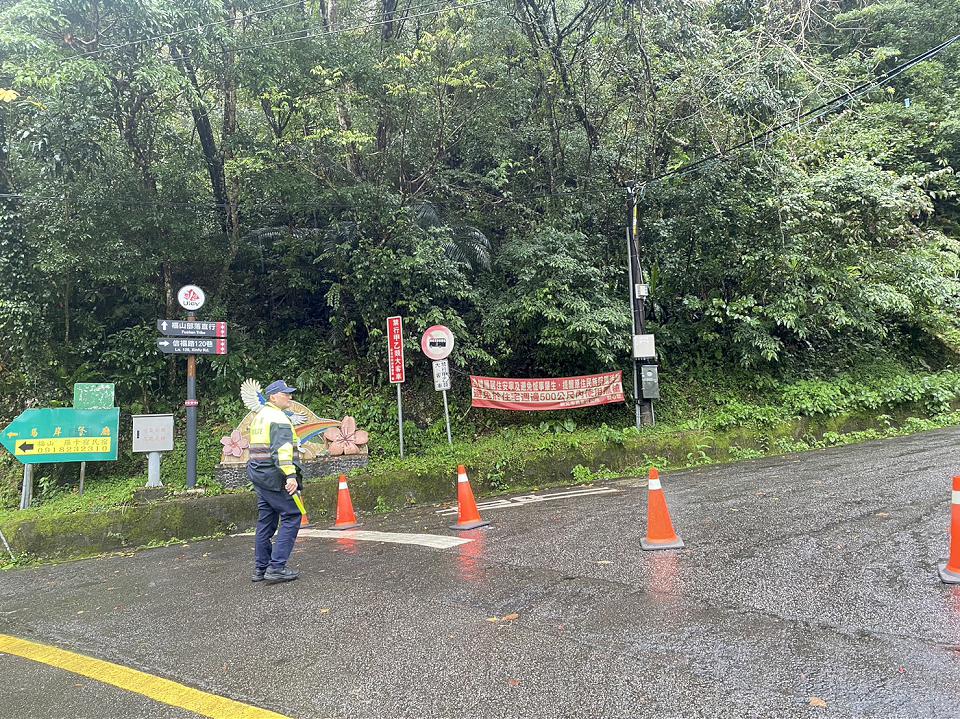 新店警方在信福路上設置2管制點,若路面結冰將管制車輛加掛雪鏈。讀者提供