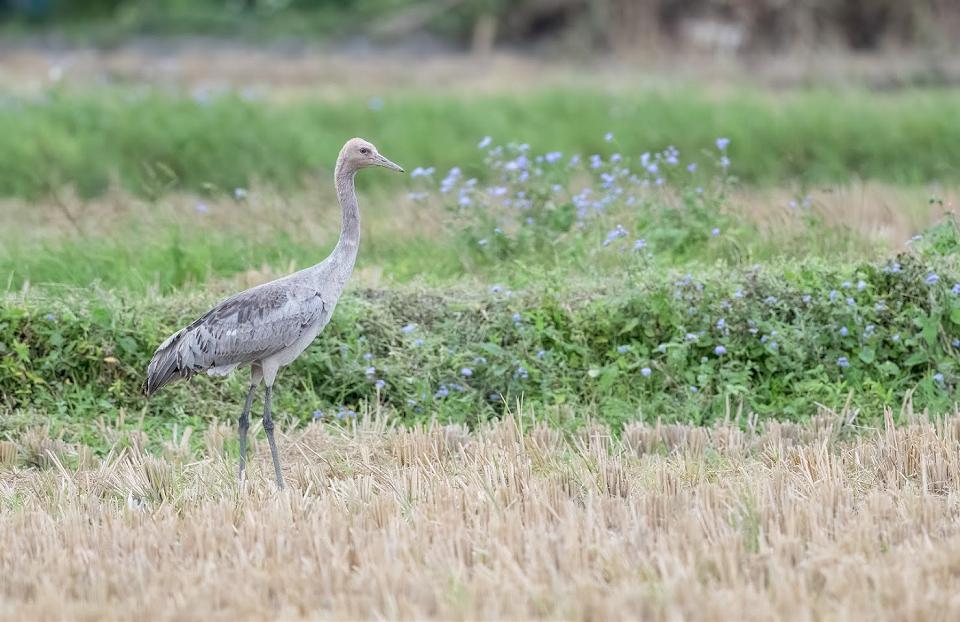 保育類鳥類「灰鶴」首次出現在花蓮。翻攝社團法人花蓮縣野鳥學會