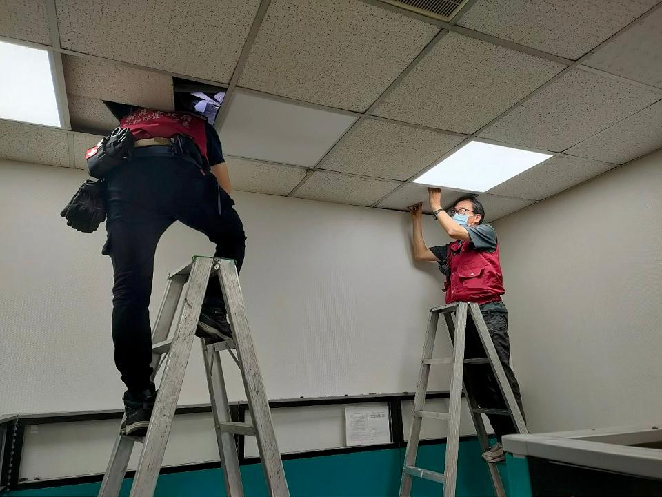新北市動保處日前接獲板橋區文化路市場附近愛媽求救,指稱市場有貓受困在銀行後面的牆壁內側數日,動保員現場與銀行交涉後經許可入內檢查,發現橋壁內側厚實隙縫狹窄,無法利用人力或相關協套輔具可深入救貓,打破牆壁唯一可行方式,由於涉及破壞牆面結構恐有保安問題,經銀行分行人員緊急聯繫總行授權,在銀行保全人員協助下,動保員終於救出多日受困貓咪。