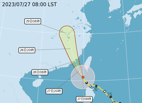 中颱杜蘇芮以每小時13公里速度,向北北西進行,預計27日晚間進入台灣海峽,直撲中國福建省,因此金門將進入暴風圈內,因此行政院人事行政總處14時10分,首先發布金門縣28日停止上班上課,其他各縣市將視颱風動態另行宣布。