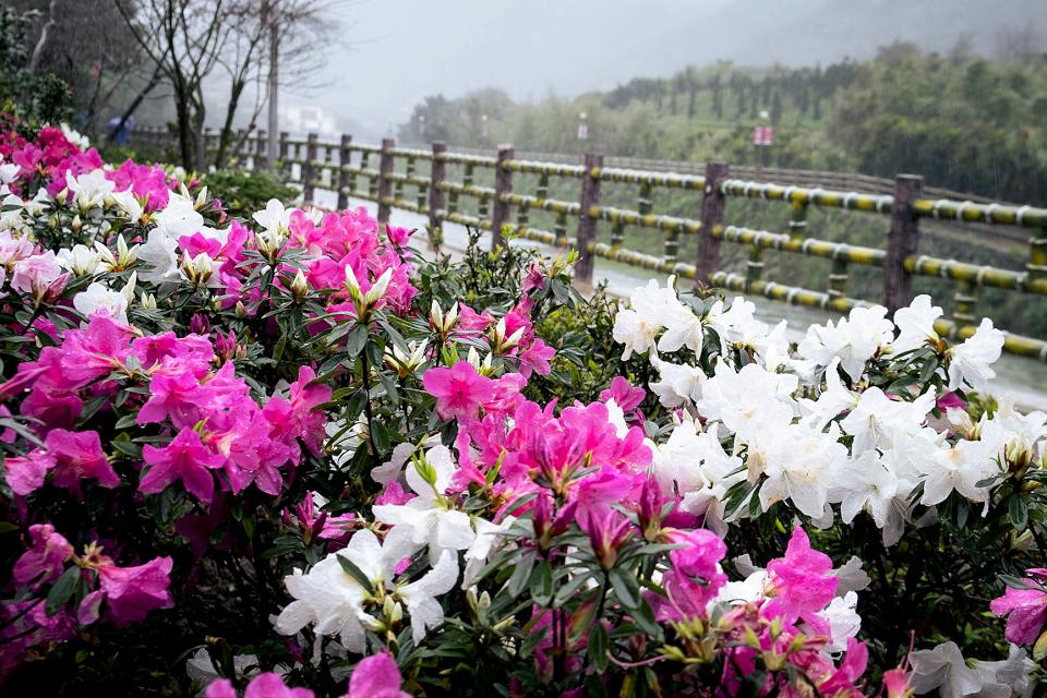 映山園來自杜鵑別稱映山紅,且呼應當地知名的萬里情月老廟,希望讓每個走訪映山園的民眾,都能有好緣的寓意;而園內除種植當季開花的平戶杜鵑外,也搭配球型皋月杜鵑及黑松、櫻花、流蘇、紫薇等植栽,吸引民眾打卡停駐;本次展區計1.5公頃,共種植2萬株平戶、皋月、久留米、台交、西洋等5個品種杜鵑,目前杜鵑陸續綻放,歡迎民眾一同來趟河畔杜鵑饗宴。