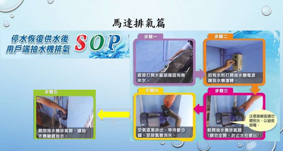 恢復供水後抽水機排氣sop。翻攝台中市政府