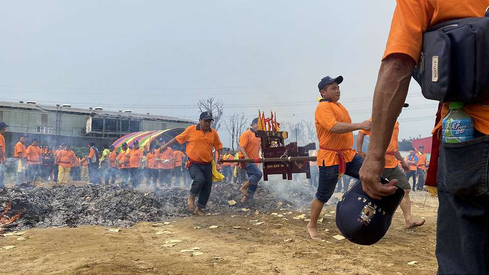 民俗文化資產「竹圍福海宮飛輦轎、過金火」。翻攝桃園市政府