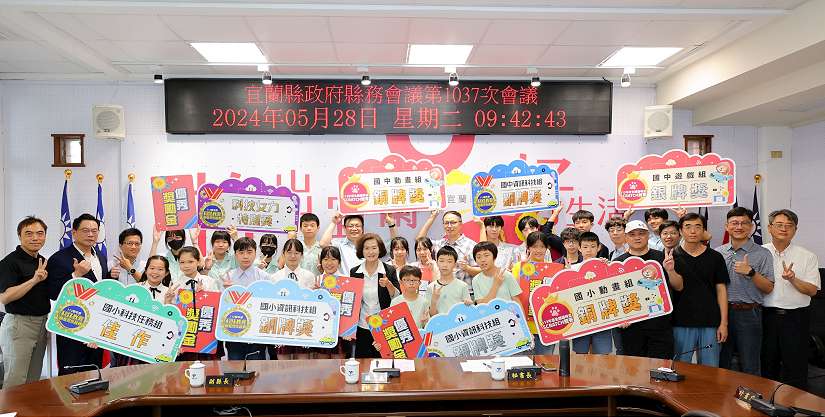 宜蘭縣政府於昨(28)日上午9時30分縣務會議時舉行「全國貓咪盃Scratch競賽及全國科技教育創意實作競賽」奪牌師生頒獎,由林姿妙縣長親自頒發,勉勵感謝得獎師生為宜蘭縣奪得最高榮耀,並於縣務會議後,在多媒體簡報室進行得獎作品說明,由獲獎學生親自向林縣長介紹此次參賽作品的創新發想與成果。