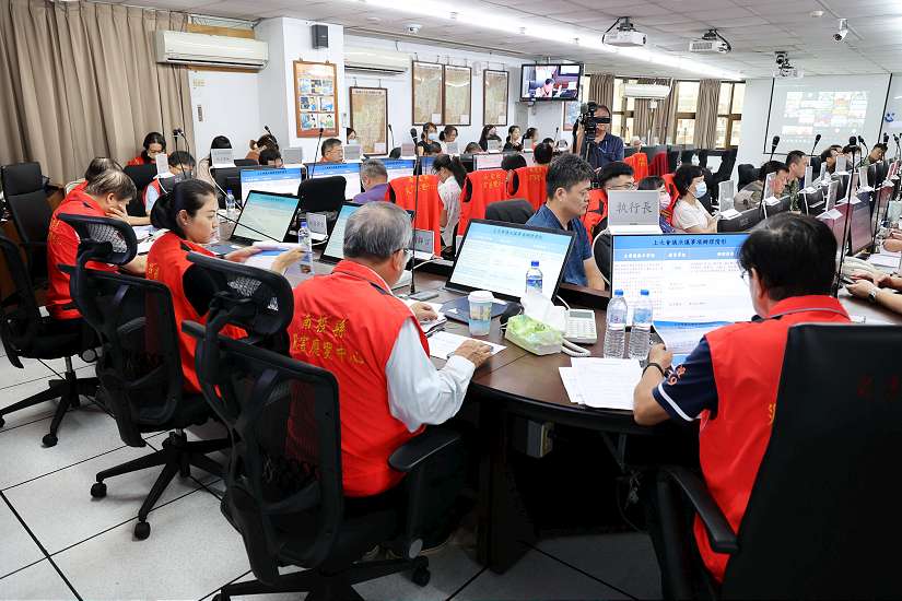 許縣長25日上午展開勘災行程,下午3點前便進入防災應變中心,除了聽取防災應變報告,也和中央防災應變中心進行連線,就南投縣災情,向中央進行說明。