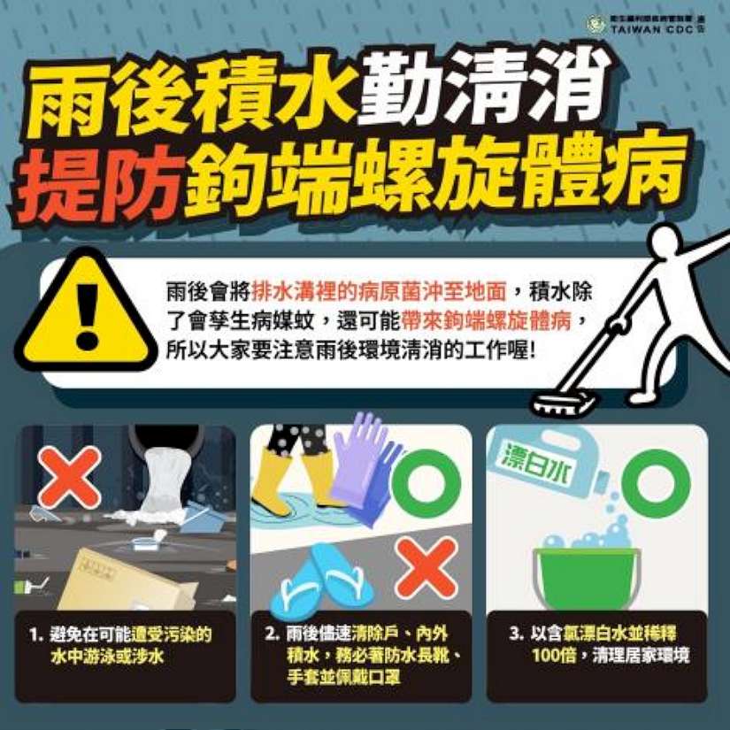 凱米颱風雖已遠離台灣,但中南部仍可能有豪雨發生,民眾災後務必留意環境、飲食衛生、避免感染傳染病!