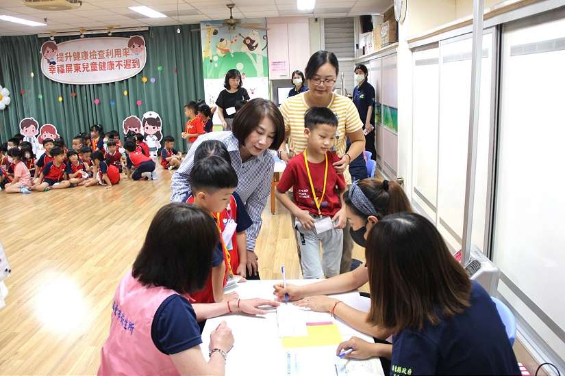 屏東縣以「兒童健康福祉擺第一」為核心,衛生局9月啟動學齡前兒童入園健檢,首場(3)日在屏東大學附小幼兒園登場,後續將在縣內各幼兒園、托嬰中心及親子館辦理兒童健康檢查,每年一次,縣長周春米表示,縣府化被動為主動,將醫療資源帶入校園,除了身高、體重等一般健康檢查外,也能盡早找出疑似發展遲緩兒童,把握黃金治療時間,希望達到不漏掉任何孩子的目標。
