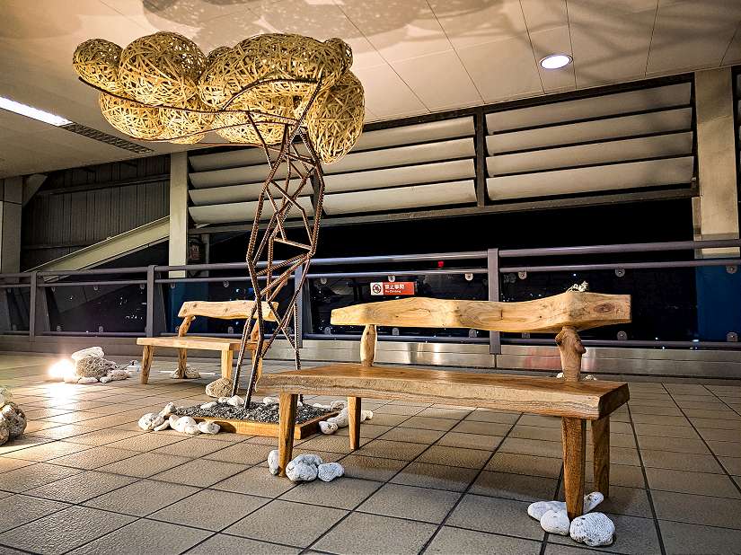 捷運新北產業園區站的裝置藝術品「Kamaro’an 坐下來的地方」。(圖/新北市政府原民局提供)