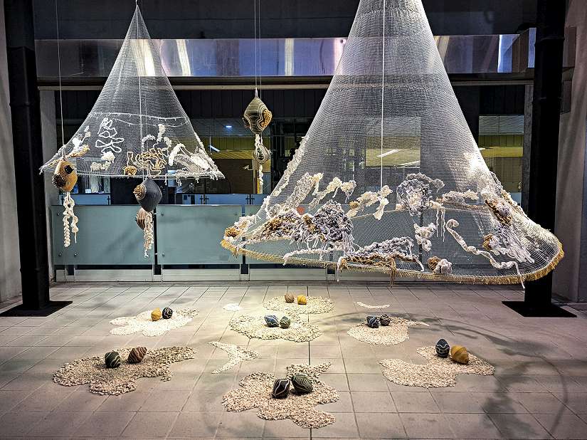 捷運十四張站的裝置藝術品「misafangcalay」(阿美語:使之美麗)。 (圖/新北市政府原民局提供)