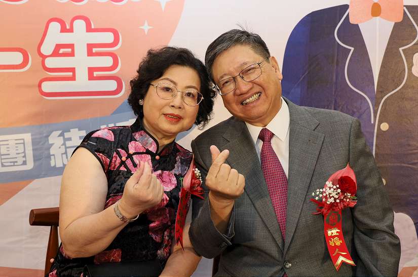 新竹縣長楊文科與夫人甘秀美擔任證婚人,與36對新人一起幸福放閃-圖/新縣政府提供
