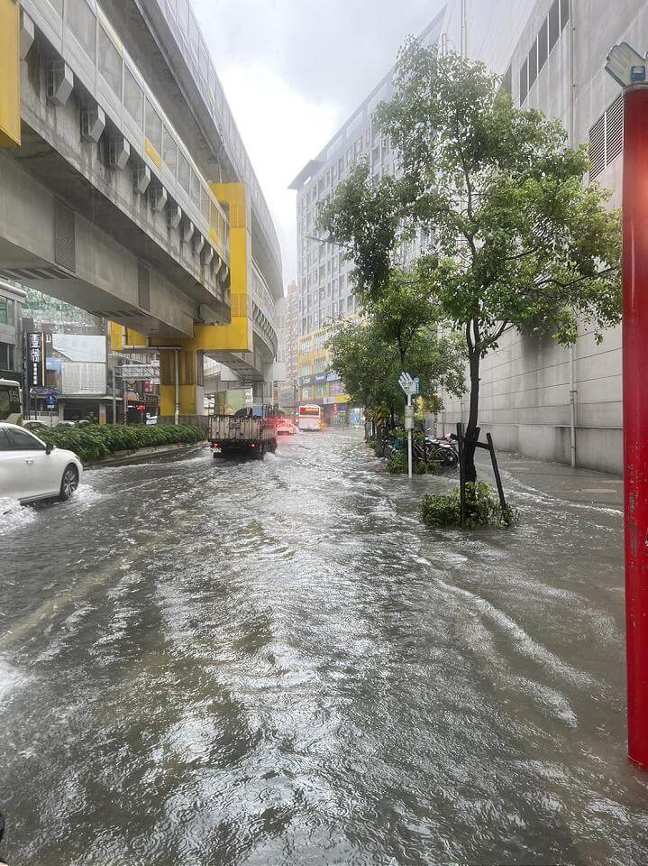 新北市中和區板南路積水約30公分。畫面讀者提供