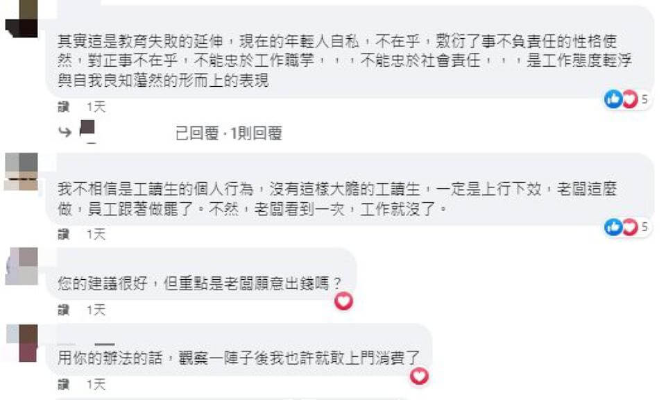 不過對於這樣的建議,網友有人認為「$100,000給這個外送員這一招真的是高招」、「讓我上了一堂品牌危機處理課程」,但也有網友持不同的看法「您確定工讀生有壓力嗎?搞不好他很開心呀?」、「發獎金建議會被認為是拿錢擺平」、「我不相信是工讀生的個人行為,一定是上行下效」。(記者余珩維/台北報導)