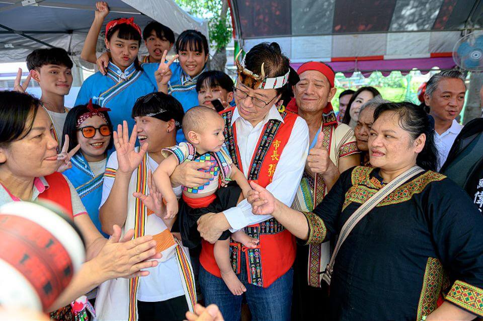 桃園市長張善政27日上午出席「布農族射耳祭(Malahtangia)」活動。翻攝桃園市政府