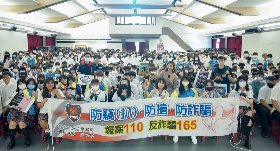 另外藝人白白與樹林預防犯罪宣導團隊聯手出擊,向學生宣導反毒小常識、反詐、婦幼安全及交通安全的關鍵訣竅。(記者余珩維/新北報導)