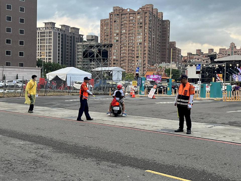2023桃園市土地公國際民俗藝術節警方與義交進行交通管制。讀者提供