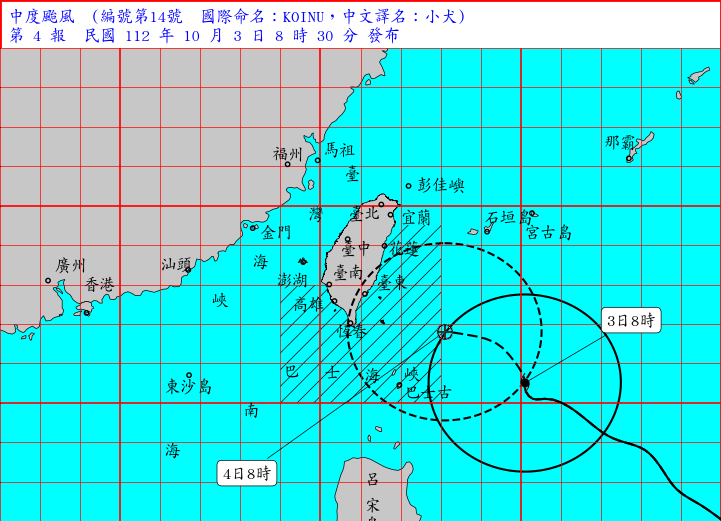 【小犬颱風-中央氣象署10月3日08:40最新動態】
