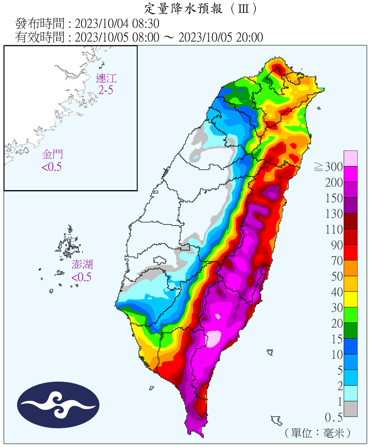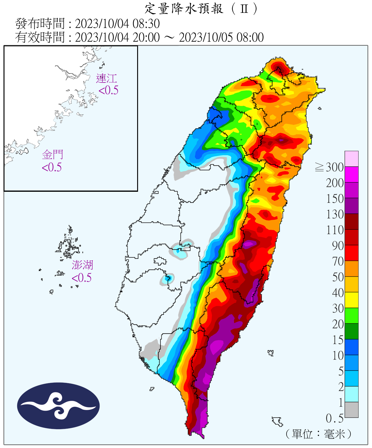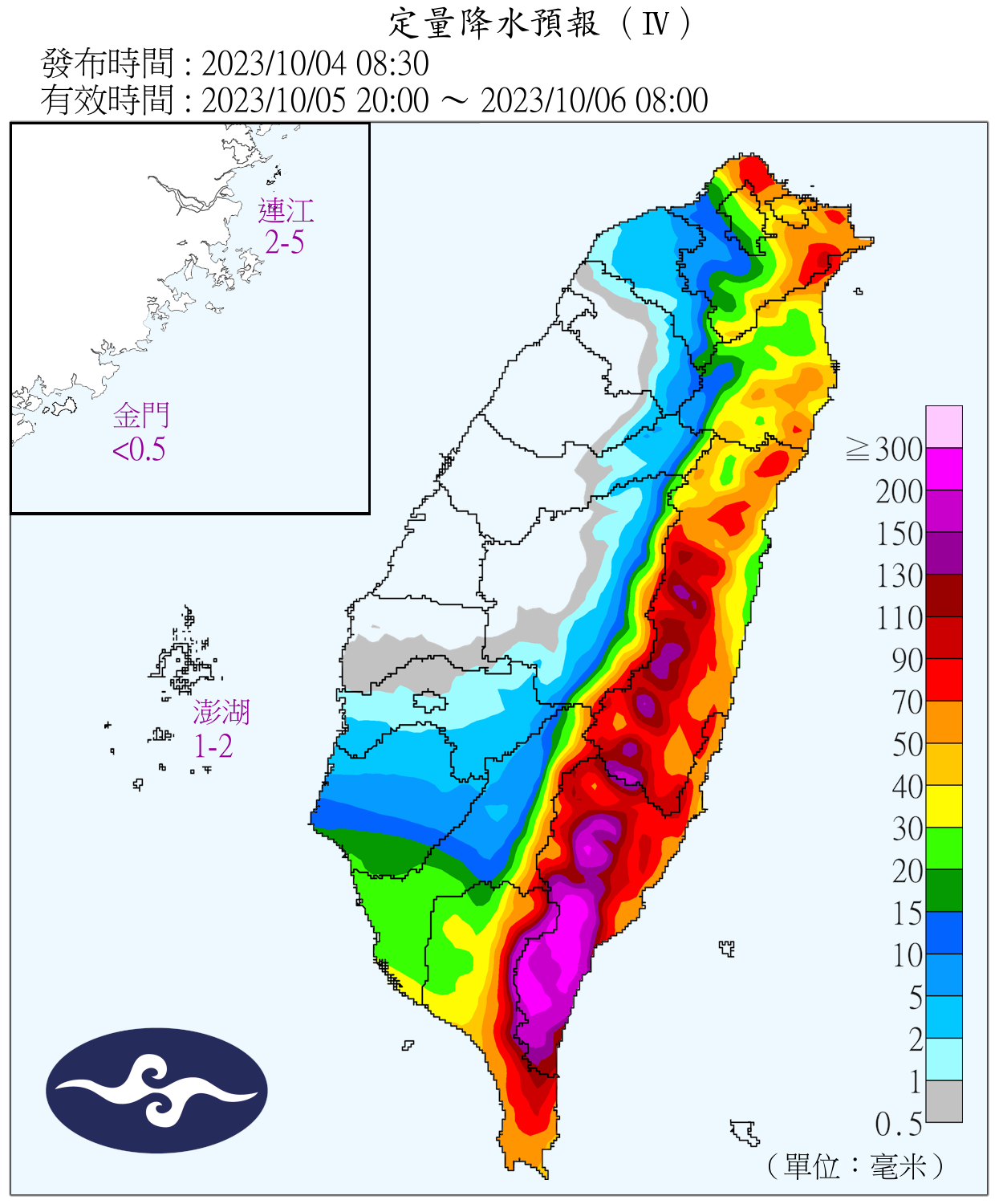 定量降水預報。翻攝中央氣象署