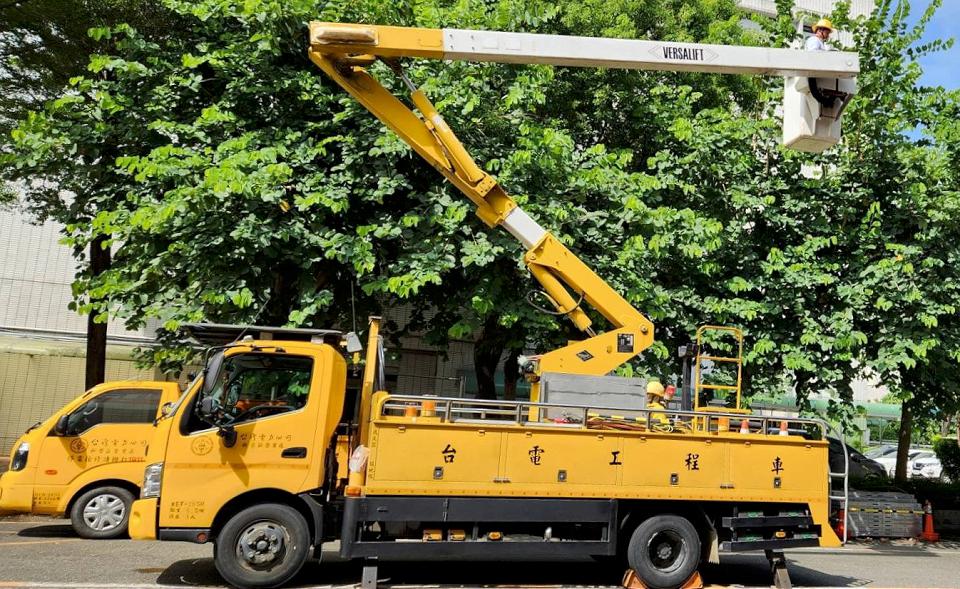 台電盤點人力及設備資源進行防颱整備、也備妥搶修車輛和各類搶修機具。翻攝台灣電力公司